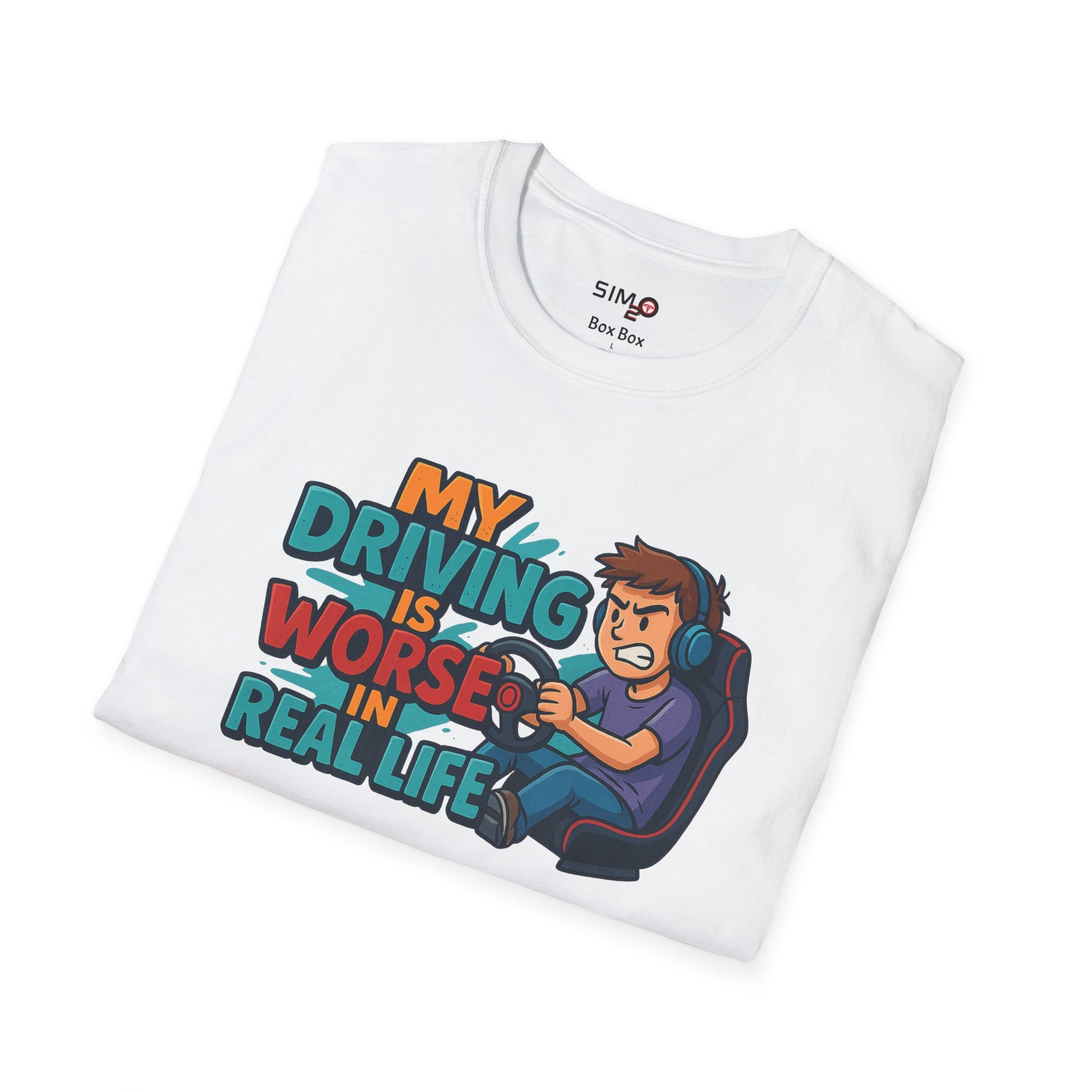 For all the racers who dominate the sim but struggle with real traffic, this one’s for you! The My Driving Is Worse in Real Life tee brings humor and personality to your wardrobe with its bold cartoon design. Perfect for sim racers, gamers, or anyone who loves a laugh, this shirt is guaranteed to spark conversations both online and offline.
