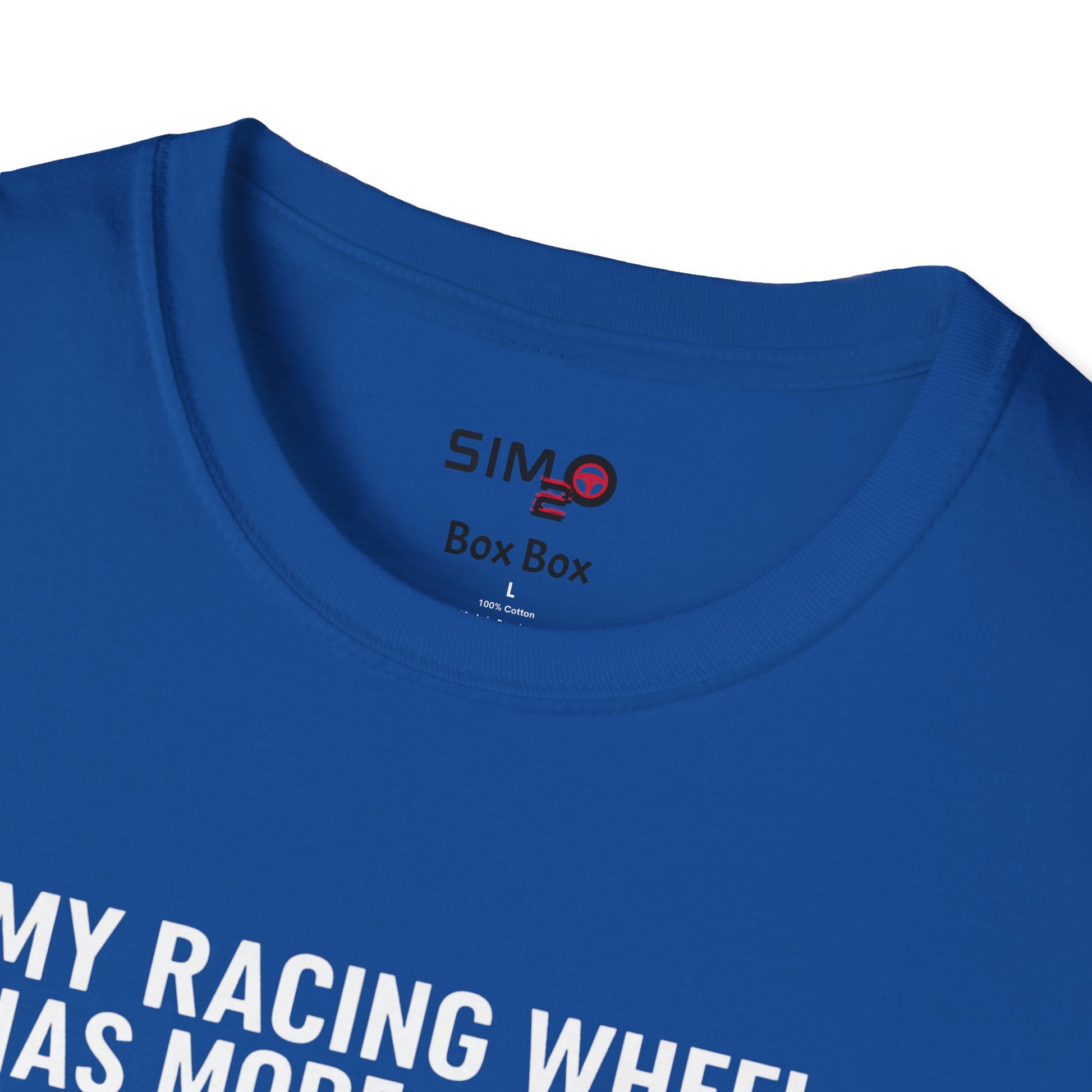 My Racing Wheel Has More Buttons Than My Brain Tee – Funny Sim Racing T-Shirt